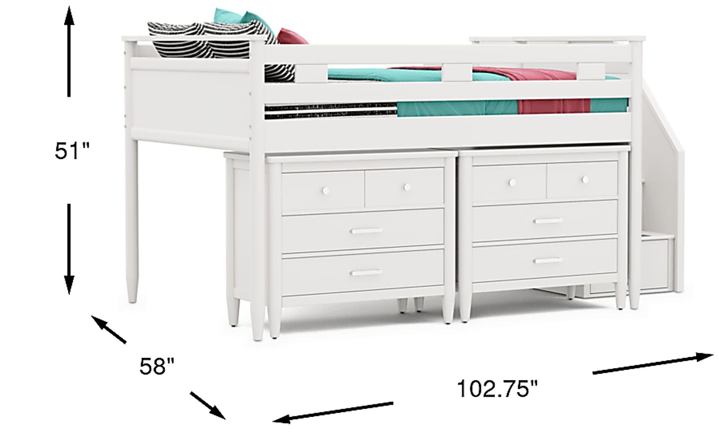 Kids Modern Colors White Full Step Loft With Loft Chests