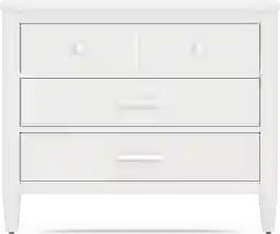 The ultimate style for your color obsession is finally here with the Modern Colors loft chest. Showcasing white finish, this piece balances ultra-sleek craftsmanship with an easygoing look. Each of the three drawers are sanded smooth to help store clothing, extra bedlinens and more. The drawers are crafted with front French dovetail joints and have ball bearing, side mounted glides. A pair of knobs on the top drawer and pulls on the remaining 2 drawers are finished in brushed nickel. Brushed gold hardware is also included with purchase. Tapered spun legs supply the chest with a chic final touch.