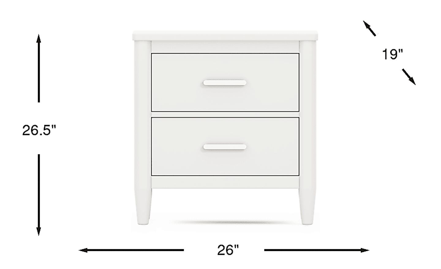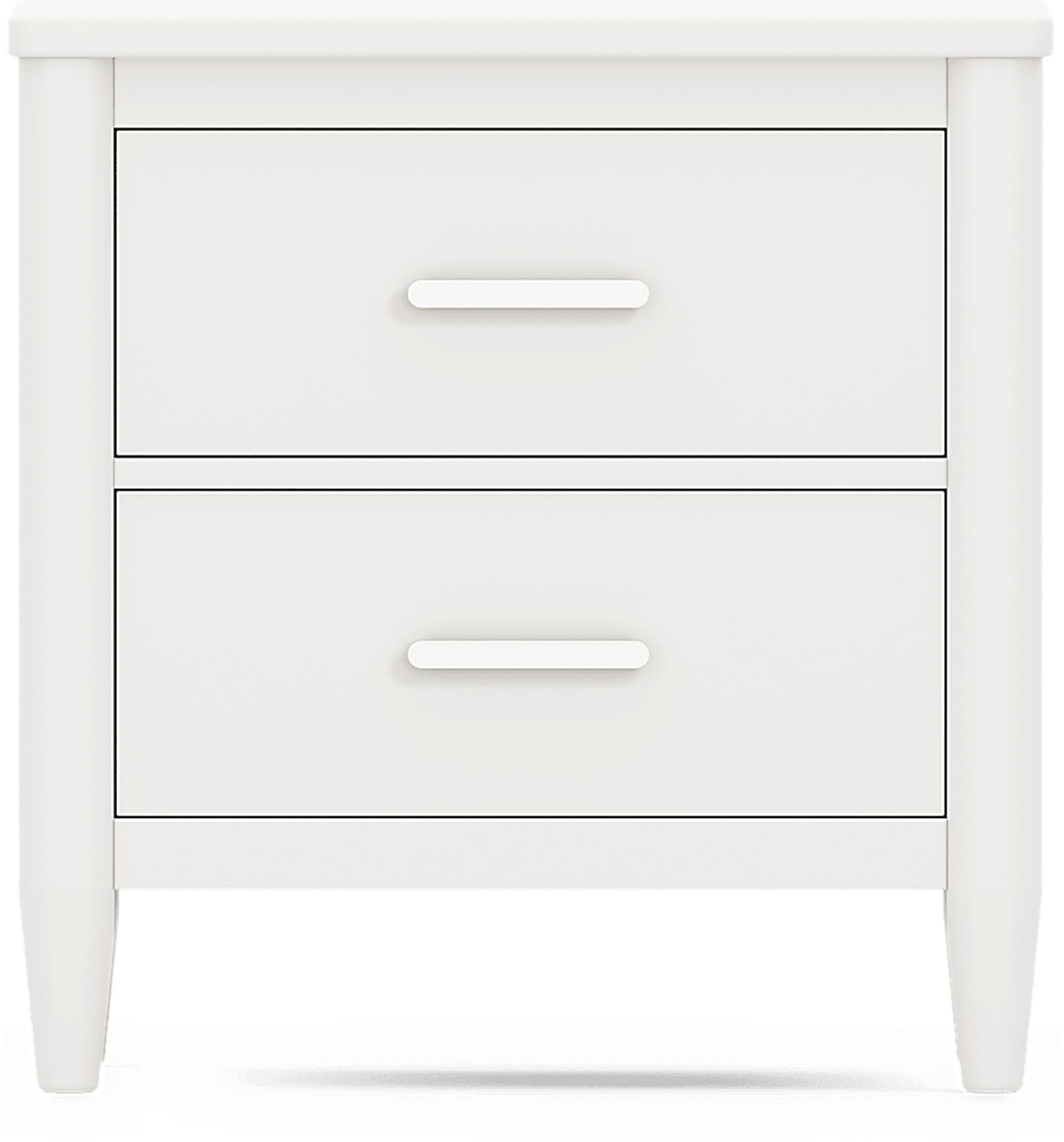 The ultimate style for your color obsession is finally here with the Modern Colors nightstand. Showcasing white finish, this piece balances ultra-sleek craftsmanship with an easygoing look. Each drawer is sanded smooth to help keep bedside essentials close at hand. The drawers are crafted with front French dovetail joints and have ball bearing, side mounted glides. The pulls are finished in brushed nickel. Brushed gold hardware is also included with purchase. Tapered spun legs supply the nightstand with a chic final touch.