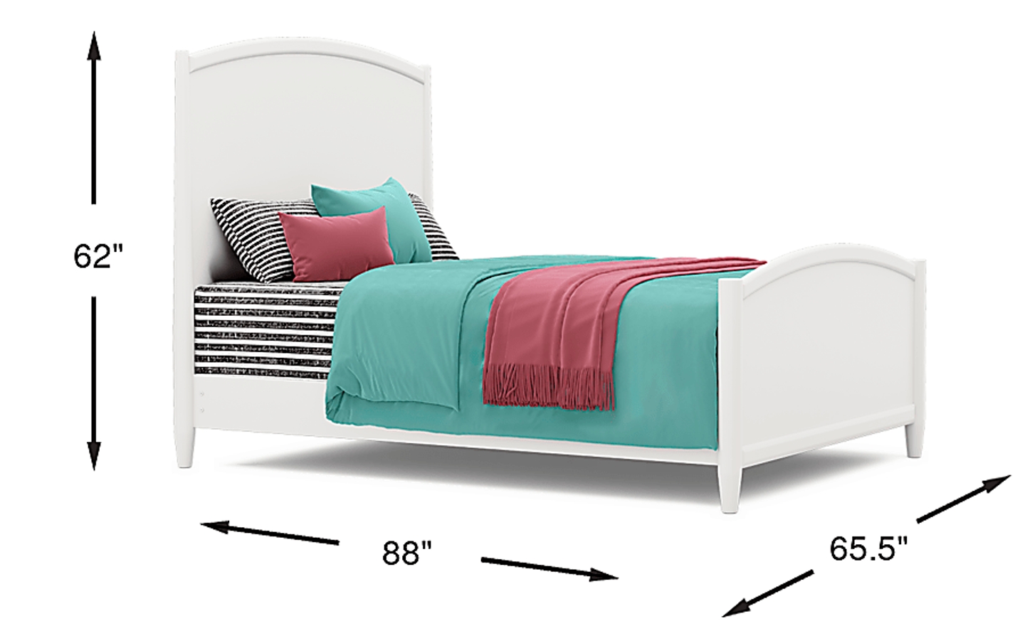 The ultimate style for your color obsession is finally here with the Modern Colors queen panel bed. With white finish, this piece balances ultra-sleek craftsmanship with easygoing comfort. Subtle molding on the headboard boasts a gentle arch that is echoed by the footboard. Adjustable side rails offer two heights for accessibility, making them easy to lower or raise as needed. Tapered spun legs supply the bed with a chic final touch. Mattress and foundation (if required) sold separately.