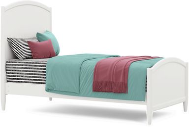 The ultimate style for your color obsession is finally here with the Modern Colors twin panel bed. Showcasing white finish, this piece balances ultra-sleek craftsmanship with easygoing comfort. Subtle molding on the headboard boasts a gentle arch that is echoed by the footboard. Adjustable side rails offer two heights for accessibility, making them easy to lower or raise as needed. Tapered spun legs supply the bed with a chic final touch. Mattress and foundation (if required) sold separately.