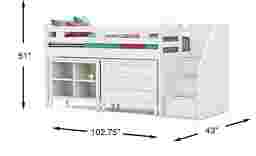 The ultimate collection for your color obsession is finally here with the Modern Colors twin low loft bed. Showcasing white finish, each piece balances ultra-sleek craftsmanship with easygoing comfort. Featuring a twin bed that sits lower to the ground than a traditional loft, this piece has a reversible staircase that can be affixed to either side of the bed. The steps feature storage drawers that are perfect for stashing away clothing, books and more. The coordinating loft chest has three drawers crafted with front French dovetail joints and ball bearing, side mounted glides. A matching 37-inch bookcase can shelve books, comics, magazines, decor and more. The hardware is finished in brushed nickel but brushed gold knobs and pulls are also included with purchase. Mattress and foundation (if required) sold separately. This product requires a bunkie board (sold separately).