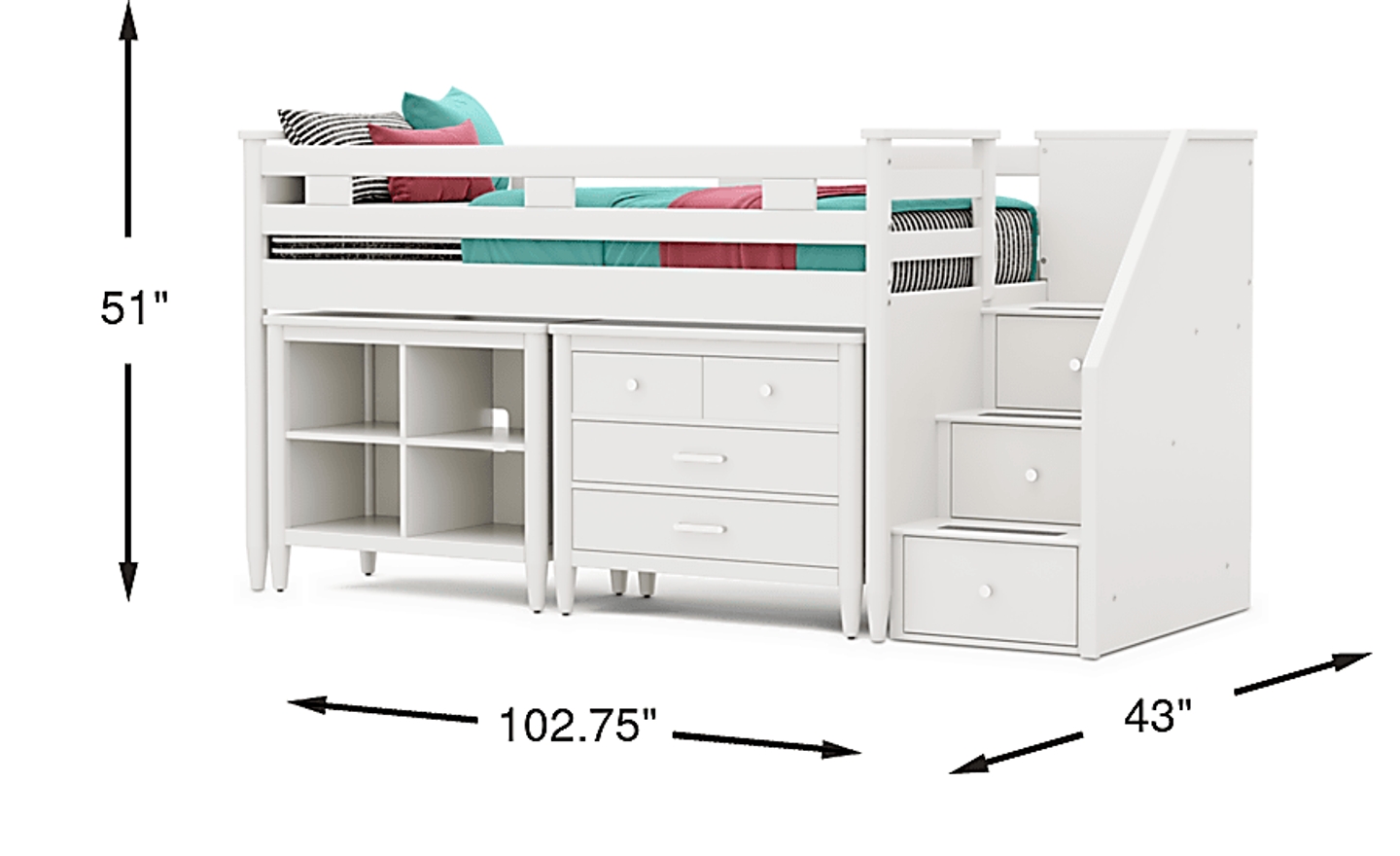 Kids Modern Colors White Twin Step Loft With Loft Chest And Bookcase