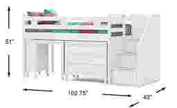 Kids Modern Colors White Twin Step Loft With Loft Chest And Desk