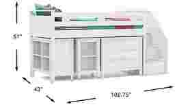 Kids Modern Colors White Twin Step Loft With Loft Chest, Bookcase And Desk