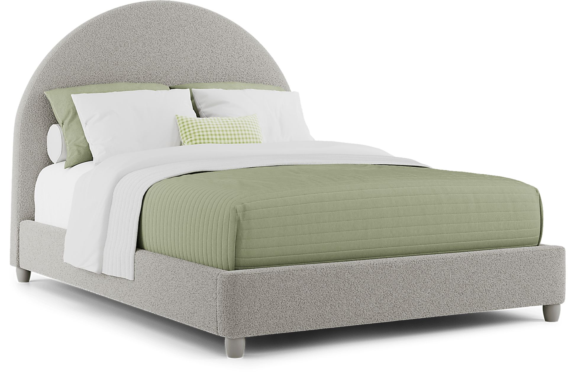 You'll be over the moon for the simply modern style of the Moonstone bed. Fully upholstered with soft boucle fabric, the focal point of the piece is the signature half-moon arch of the headboard. This full bed features a Montessori-style, wraparound frame that's low to the ground and sits on base glides. This set also includes turned wood legs to better fit your loved one's growing needs. The gray feet are painted to match the gorgeous color of the upholstery. Mattress and foundation (if required) sold separately. Bunkie board is required for this product (sold separately.) Upholstery: 100% polyester