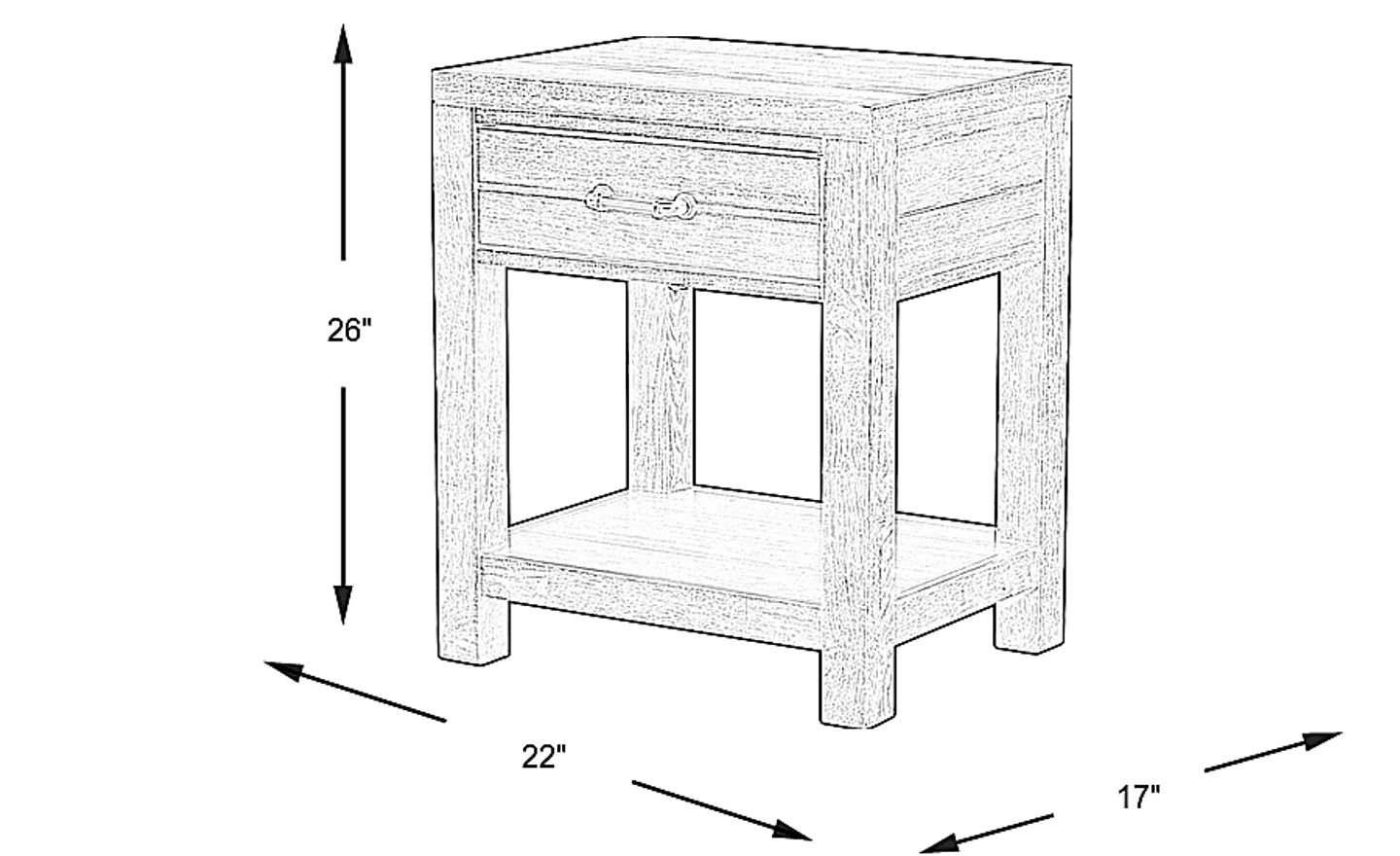 Packed with cool features, the Morgan Mills nightstand delivers style and function for your child's bedroom. Perfect for their bedside, this nightstand includes one small drawer and a lower shelf for convenient storage. Motion-activated lighting underneath the drawer and a built-in USB charging port take it to the next level. Crafted of wood solids and acacia veneers, this piece boasts an industrial-inspired mineral finish. Beautiful wood paneling throughout creates a rustic look. Completing the look is an iron drawer pull in an antique pewter finish.