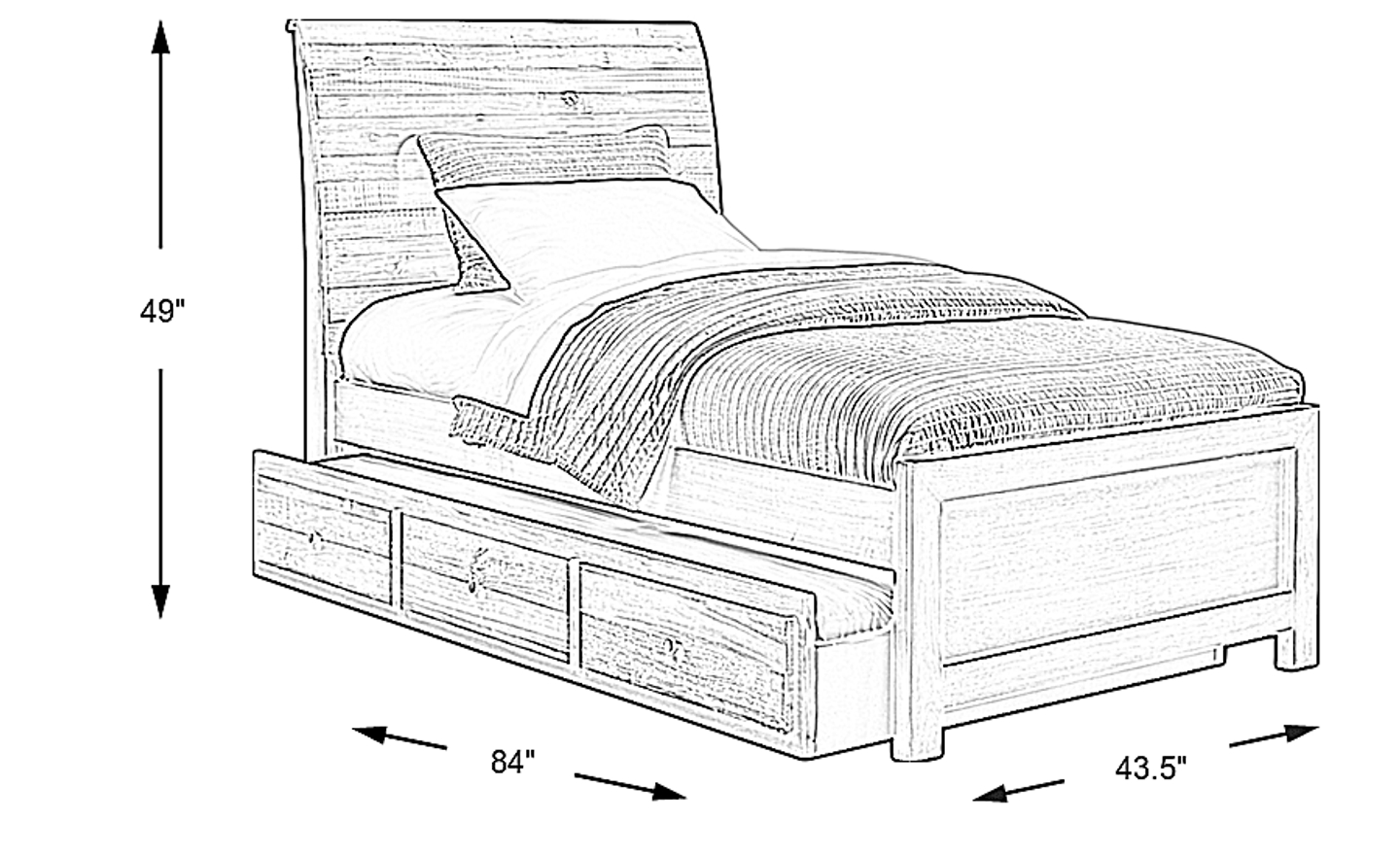 The versatile Moss Creek Jr. sleigh bed has a stylish contemporary-meets-rustic design that easily transitions from childhood into college years. Crafted from poplar, pine, and alder solids with maple veneers in a gray finish, the headboard features reclaimed wood-style plank detailing on a curved sleigh frame. An adjustable setting allows you to raise the bed's height as your child grows. Underbed twin storage trundle is included. Mattress and foundation (if required) sold separately.