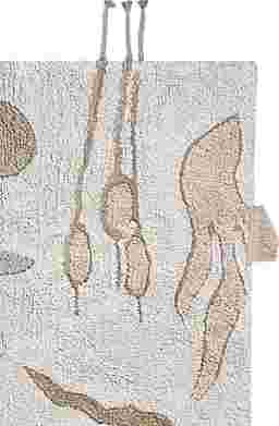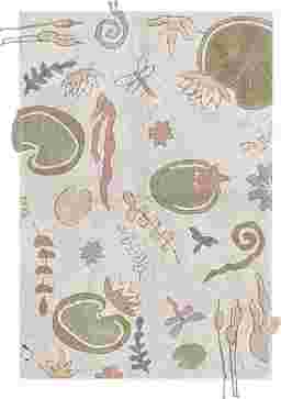 Step into a storybook with this enchanting cotton rug by Lorena Canals-a unique artisan piece designed to bring nature's whimsy indoors. It's 100% machine washable for easy, earth-friendly care. Gentle pastel hues in greens, pinks, and purples set the scene, with hand-stitched water lilies, dragonflies, reeds, and snails dancing across a soft natural base. Delicate fringes and braided textures add depth, and in one charming corner, a bulky braided snail makes a cozy nest. As a finishing touch, a sweet little frog in olive green canvas hops in to complete this magical moment.