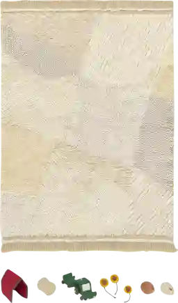 Turn your playroom into a pint-sized pasture of possibilities. Crafted from soft cotton with a honey-hued canvas base, this washable area rug features gentle stripes in grey, beige, and yellow-evoking rolling farm fields under the sun. Its mix of textures invites curious little hands to touch and explore, making sensory play part of the fun. It doesn't stop there, this charming rug comes with seven delightful accessories-mini barn, tiny sunflowers, a cheerful chicken, sturdy truck, and haystack-everything needed to spark farmyard storytelling and playful adventures.