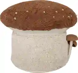 This designer piece by Lorena Canals is specifically crafted to enhance woodland or nature-themed decor. The artisan details, such as the knotted dots on the cap and the small braided mushrooms growing from the side, provide a tactile and imaginative element that is perfect for creating a magical atmosphere in a child’s reading corner or play area.