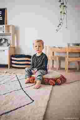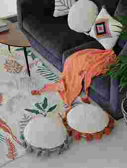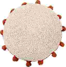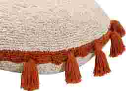 This is a unique artisan piece, carefully designed by Lorena Canals. This pillow is a filled washable round cushion with base in natural color using loop technique and terracotta tassels.
