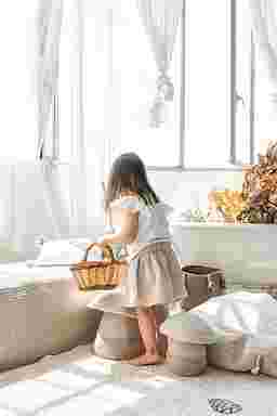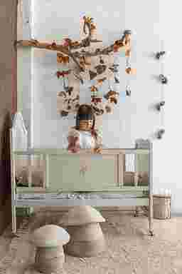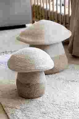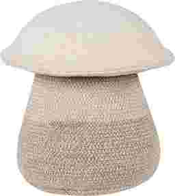 This artisan mushroom-shaped basket is a charming creation by Lorena Canals. Handcrafted from natural and linen-blend cotton cord, the bottom basket tapers from a wide base to a narrow top and features contrasting Soil Brown stitches. The top basket, made of soft natural cotton cord, includes folded inner edges that complete the playful mushroom cap design. Both pieces combine form and function, offering stylish storage and whimsical appeal. Ideal for cozy spaces, it's a delightful accent for nurseries, playrooms, or any room craving a touch of nature. Customer assembly is required.