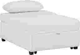 Unlike basic foam-only flip chairs, this sleeper features a more structured design with a dedicated pull-out movement. The inclusion of a plush pillow-pad back ensures that when transitioned into a bed, the sleeping surface offers more consistent support than simple fold-out cushions. The addition of sturdy black block legs provides essential elevation and stability, keeping the sleeper off the floor for a cleaner, more traditional bed-like experience.