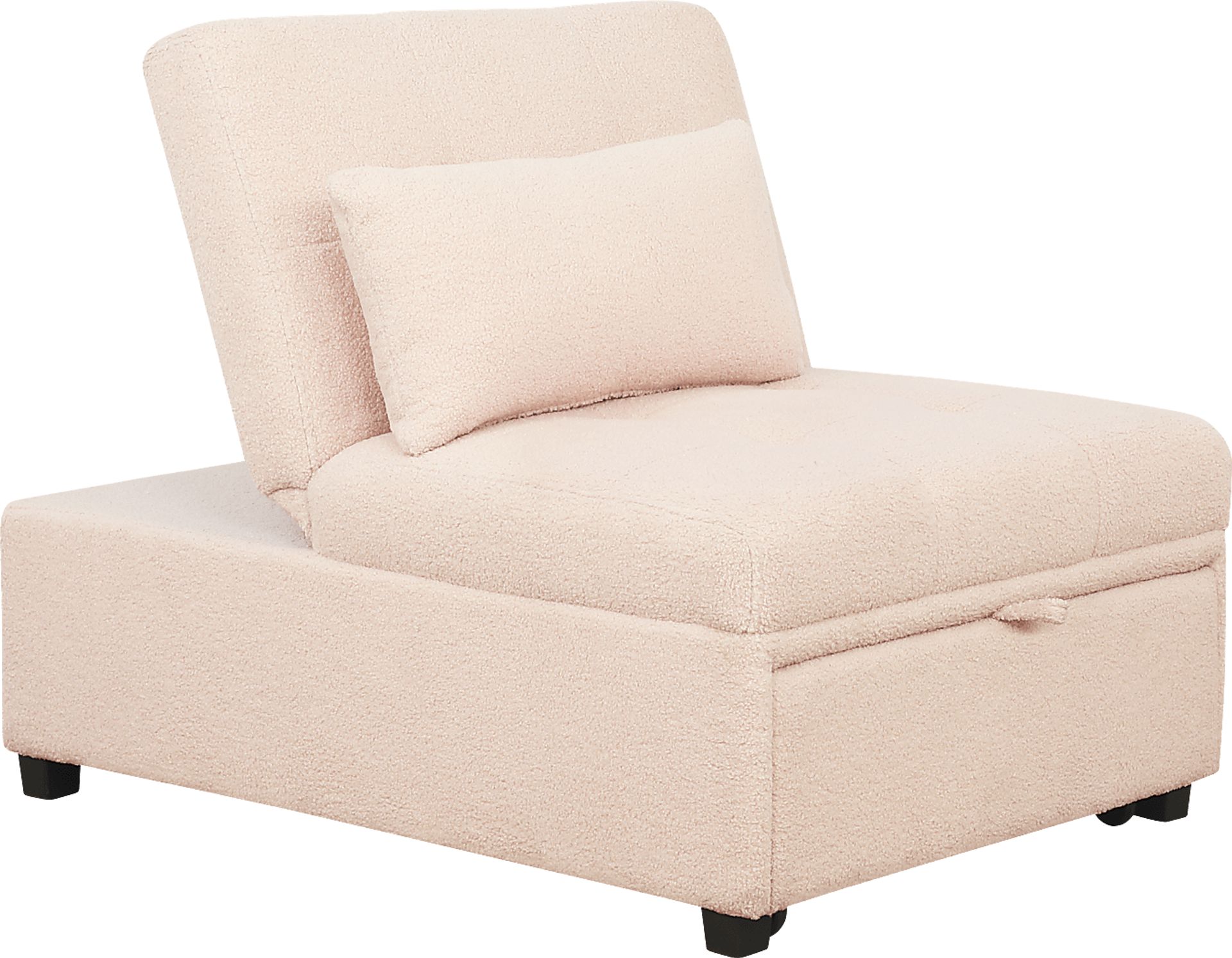 You'll simply cherish the easy-going accommodations offered by the Nimble sleeper chair. The blushing tone of the boucle fabric gifts this piece a precious quality that's matched by the seat's plush pillow pad back. A sleek pullout feature turns the chair into a restful place for friends spending the night or even a parent catching up on sleep while overnighting in the nursery.