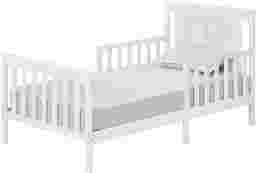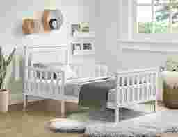The Nolween toddler bed speaks tradition and style while maintaining the highest quality and safety standards in the industry. Help make the transition from crib to toddler bed easy with the toddler bed. Featuring clean lines with a smooth, low-profile headboard and two guardrails for safety, the low to the ground design allows your toddler to get in and out of bed easily. The easy to assemble Nolween toddler bed is designed to fit a most standard full-size crib and toddler mattresses. Customer assembly required.