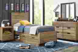 If you think Northridge Drive is just another cookie cutter bedtime style, get ready to have your mind blown by a cool collection that has more charm than an entire neighborhood of gingerbread houses. With a frame crafted with durable hardwood solids, this mirror features beveled glass and has a small shelf. Caramel finish completes the look.