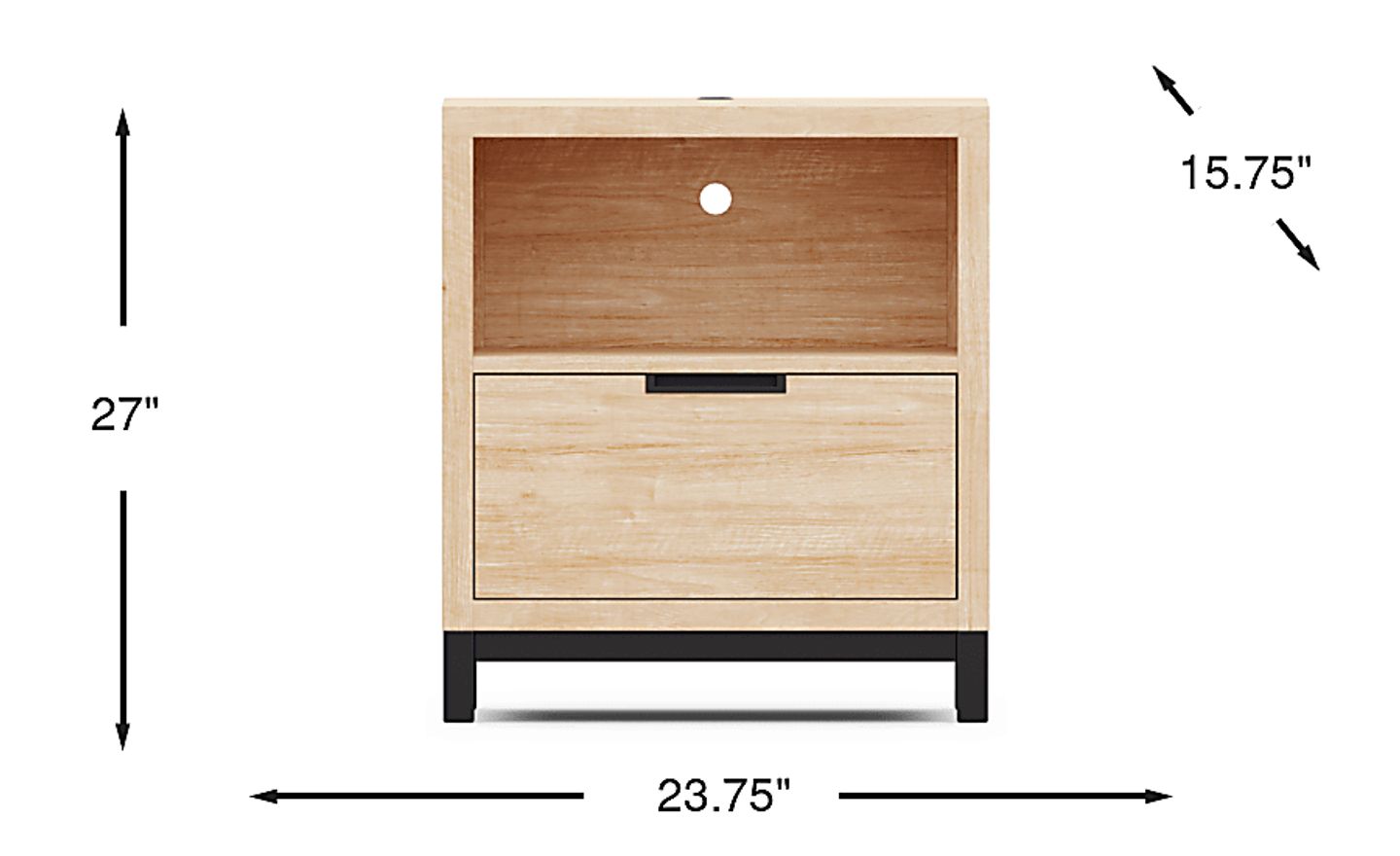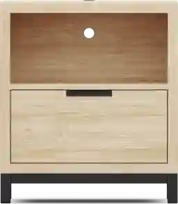 If you think Northridge Drive is just another cookie cutter bedtime style, get ready to have your mind blown by a cool collection that has more charm than an entire neighborhood of gingerbread houses. Equipped with USB-C and USB-A ports, bedside USB charging really amps up what you can do with this nightstand. Crafted for durability, this piece is finished in oatmeal for a traditional look and feel. The bottom drawer is joined by French dovetailing in front and English dovetail joints in back for enhanced durability and features a glide affixed to the bottom center its underside. Zinc alloy hardware, finished in a powder coated copper brown, adds a reserved flourish of contemporary flair. The simple bookshelf compartment makes it easy to keep everything from your favorite reads to your favorite collectibles organized and within an arm's reach.