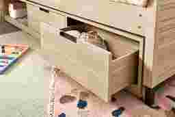 This storage unit is engineered for long-term durability. The drawers feature high-quality joinery, with French dovetailing in the front and English dovetailing in the back. This construction method ensures that the drawer boxes remain sturdy and intact even with the frequent pulling and pushing typical in a child’s bedroom. Additionally, the zinc alloy hardware is finished with a powder coating for extra resistance against wear and tear.