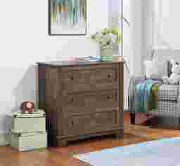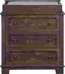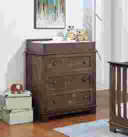 The Novira Dresser is a classic modern rustic design that will stand the test of time. A lightly textured, soft-touch finish assures the safety of your baby. The 3 drawer dresser offers 3 spacious drawers for all of the baby's necessities while providing a top surface large enough to add the Novira Changing Table. Customer assembly is required.
