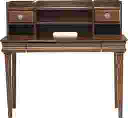 The Oberon computer desk has a drop down keyboard tray, making it the perfect piece for a study corner. The matching hutch has multiple cubbies for display and two cabinets for additional storage. A cut out in the back makes it easy to plug in your computer and keep cords neat. Crafted of poplar solids with a dark cherry finish and round pewter hardware, the edges are rounded for safety and style.