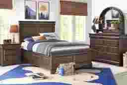 From staying up past your bedtime to oversleeping in style, the Oberon collection adds calmness and coolness to your routine. Crafted with Mindi veneers, this sweet set offers ample storage alongside convenient power features. Rich chocolate finish provides the perfect backdrop for any decor. Drawers on the bed rails and footboard provide storage for extra blankets, PJs and more nightly essentials. The matching dresser's built-in power strip includes two AC outlets, one USB-A and one USB-C fast-charging port for ultra-convenience while felt-lined top drawers provide accessories with a soft surface. All drawers are joined with English dovetailing in the front and back for enhanced durability and smoothly open thanks to double extension glides. Rounding out the look with function and flair, the mirror hutch features an LED light strip and built-in charging of its own. Mattress and foundation (if required) sold separately.
