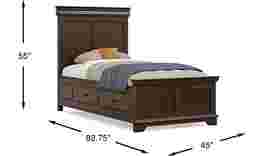 Kids Oberon Chocolate Twin Panel Bed With Storage Side Rails