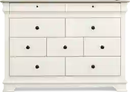 This dresser is engineered for long-term reliability using high-quality oak veneers. To ensure the drawers withstand frequent use as your child grows, they are constructed with English dovetailing in both the front and back—a hallmark of premium craftsmanship that provides superior structural integrity. Additionally, the drawers feature double extension glides, which allow for a smooth, effortless opening and closing motion while preventing the drawers from being accidentally pulled out too far.