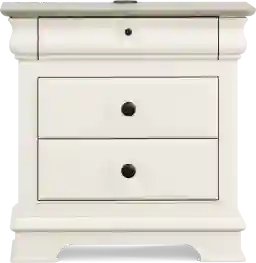 This nightstand features a transitional style that bridges the gap between traditional charm and modern simplicity. The neutral cream finish, paired with sophisticated matte black hardware and a "cookie-tone" top, allows the piece to blend seamlessly into a whimsical nursery or a more mature, refined teen bedroom, ensuring it remains a stylish part of the home as your child's tastes evolve.