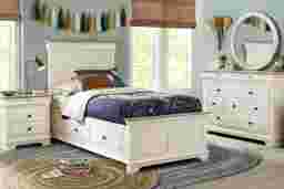 Kids Oberon Cream Twin Panel Bed With Storage Side Rails