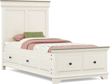 From staying up past your bedtime to oversleeping in style, the Oberon collection adds calmness and coolness to your routine. Crafted with beautiful oak veneers, this sweet set offers incredible storage alongside convenient power features. Smooth cream finish provides the perfect backdrop for any decor, while cookie-tone tops on the bed and case pieces add rich contrast for a touch of opulence. The matching dresser's built-in power strip includes two AC outlets, one USB-A and one USB-C fast-charging port for ultra-convenience while felt-lined top drawers provide accessories with a soft surface. The drawers are joined with English dovetailing in the front and back for enhanced durability and smoothly open thanks to double extension glides. Rounding out the look with function and flair, the mirror mounts to the dresser. Mattress and foundation (if required) sold separately.