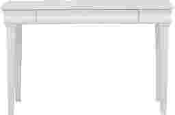 The Oberon computer desk has a drop down keyboard tray, making it the perfect piece for a study corner. Crafted of wood solids with a white finish and round pewter hardware, the edges are rounded for safety and style. The smooth top also makes an excellent spot for independent studying or creative projects, with ample surface space to spread out.