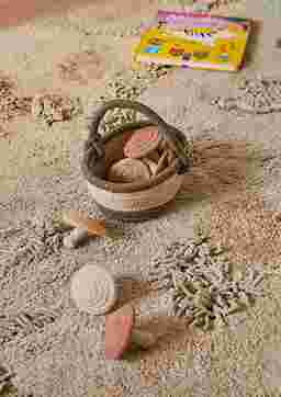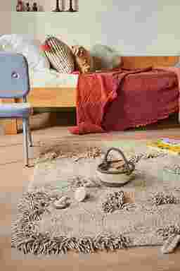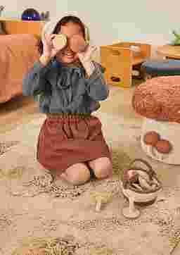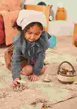 Bring the magic of the forest indoors with this soft, rectangular play rug inspired by autumn leaves, moss, and playful mushrooms. Carefully handcrafted, it's safe for kids and kind to the planet. The rich textures and cozy colors, like Olive green, honey, and golden brown, make playtime extra special. It comes with a cute cotton basket and 9nine handmade chanterelle mushrooms for imaginative fun. And yes, it's 100% machine washable for easy cleanups.