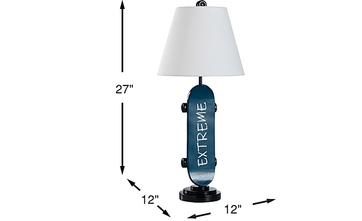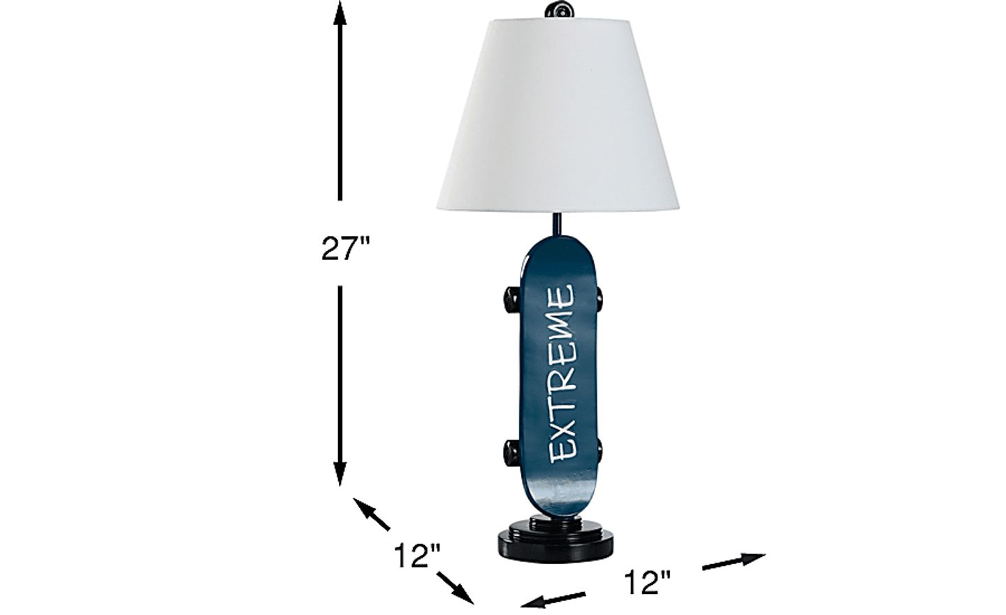 Bring the thrill of skateboarding indoors with the Outdoor Adventures Decor blue skateboard table lamp. Featuring a bold blue skateboard base made of durable resin, this lamp adds a dynamic, fun touch to any bedroom, playroom, or teen hangout space. The white tapered drum shade perfectly complements the vibrant skateboard design, casting a soft and inviting light that's perfect for reading, drawing, or relaxing after a day of adventure. Perfect for young skaters, sports enthusiasts, or anyone with a love for active, outdoor fun, this lamp is the ultimate way to bring a touch of street style into your child's space.