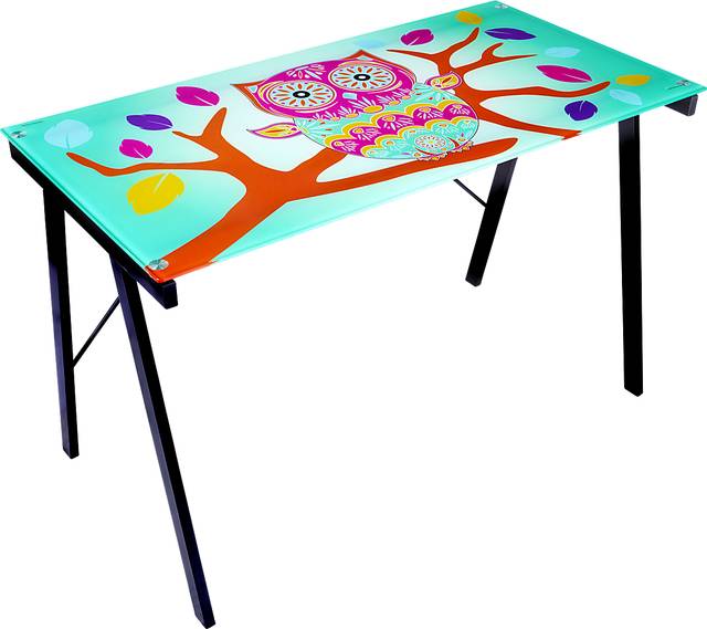 Get a hoot out of working on hobbies, homework, or creative projects with the Owl desk. Vibrant and stylish, this desk features a tempered glass top and sturdy steel frame.
