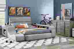 Kids Park Peak Gray Bedroom With Recharged Gray Full Bed, Nightstand, Lounger And Bookcase