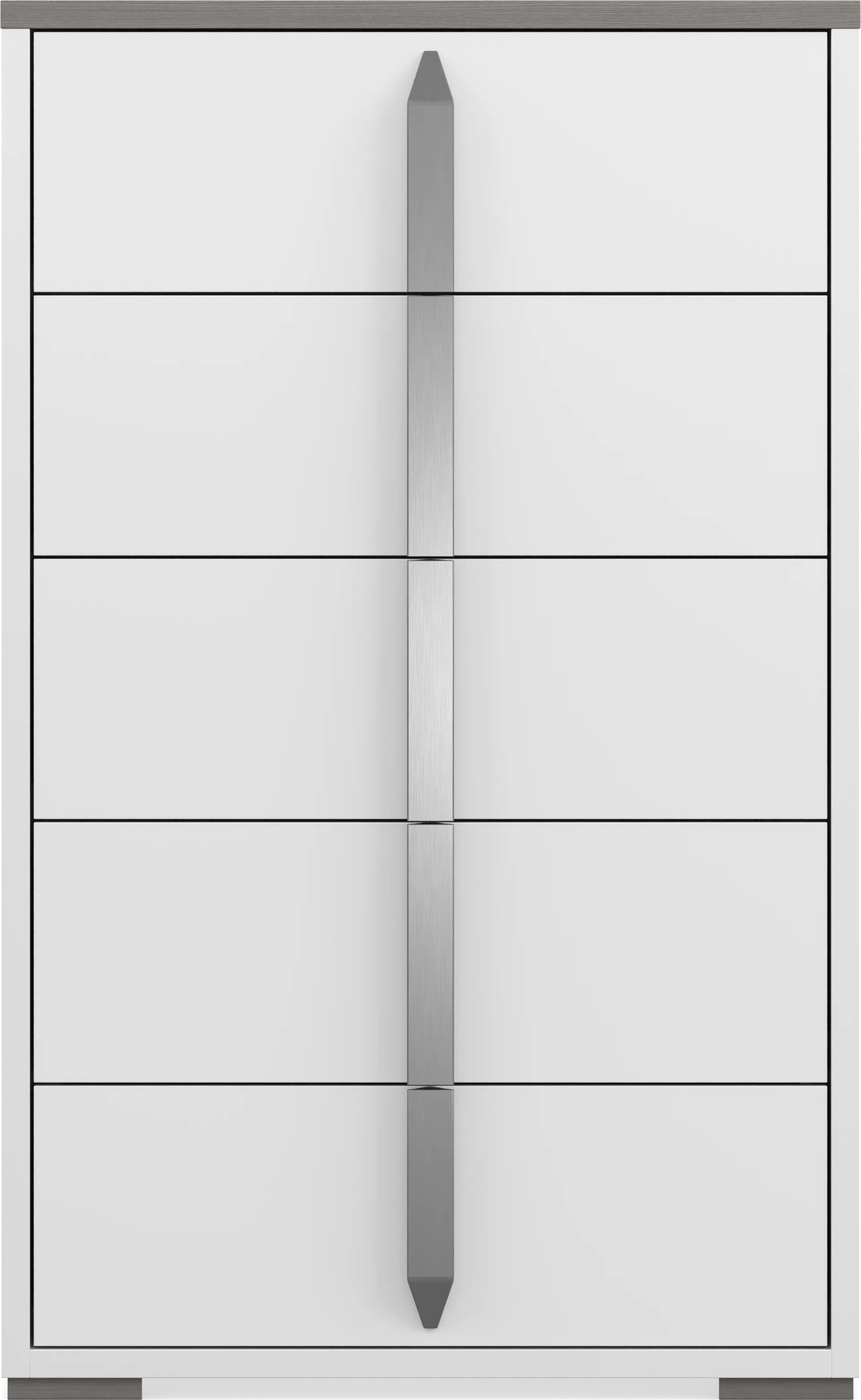 Blissful and bustling like Park City itself, the Park Peak storage chest takes cosmopolitan ski town style to new heights. Imported from Italy, this contemporary piece is crafted in a glossy white finish. Oversized vertical handle pulls run vertically down the center of the chest's five soft close drawers, buttoning the look with a fresh and exciting final touch.