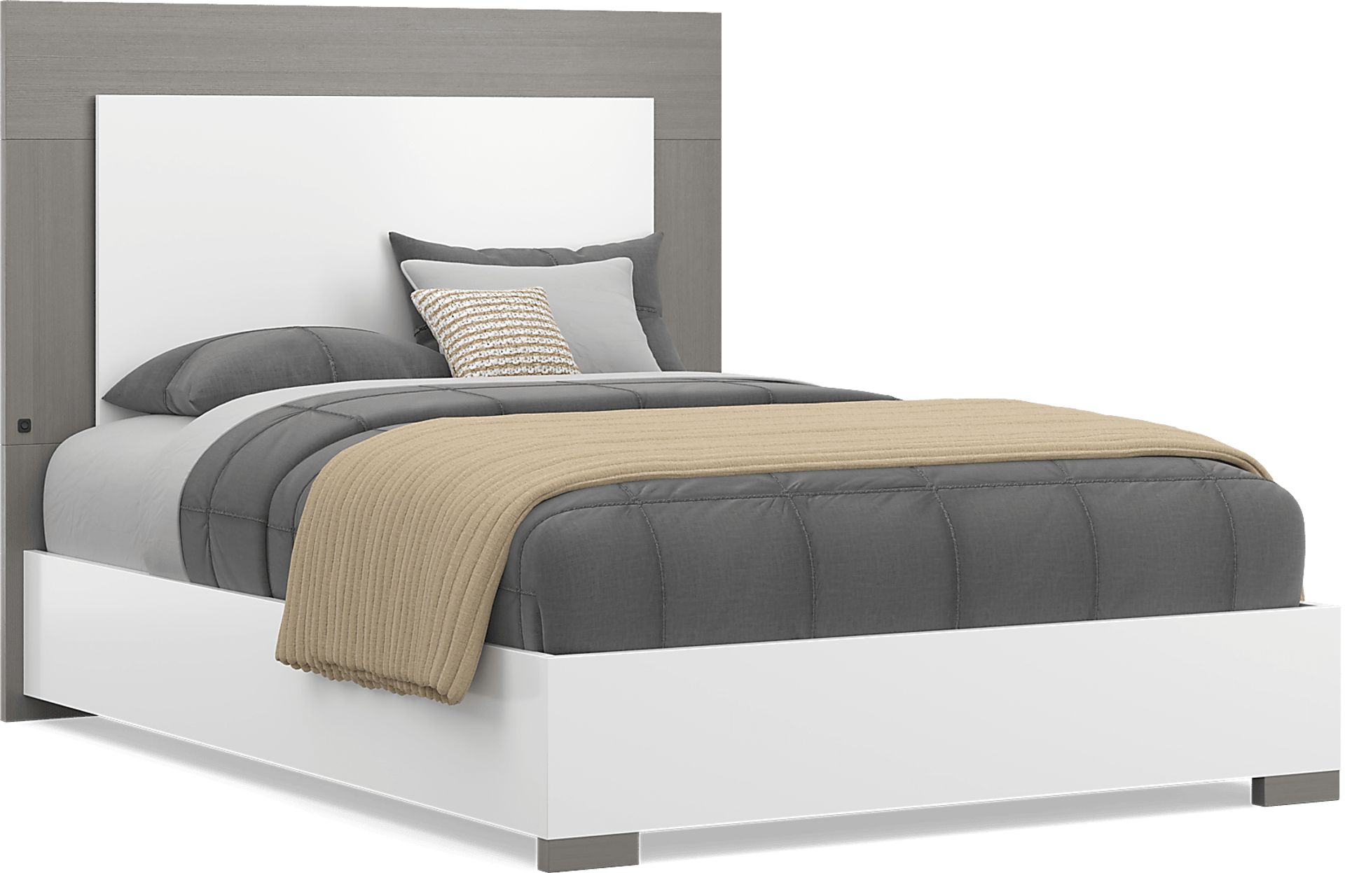Blissful and bustling like Park City itself, the Park Peak bed takes cosmopolitan ski town style to new heights. Imported from Italy, this contemporary piece is crafted in a glossy white finish. Flashy multi-tone LEDs on the gray tone headboard can double as night or mood lights for a distinctive final touch. Mattress and foundation (if required) sold separately.