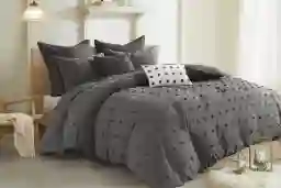 The Pastelle 5 Piece Comforter Set creates a charming space. Featuring small cotton tufts, the comforter and matching sham add texture to this solid bedding set. A solid charcoal reverse complements the top of the bed, while one quilted euro sham adds texture to the bed. Two decorative pillows are also included in this comforter set. One pillow features a pleated design and the other is crafted to match the top of the bed. This set is from 100% cotton for easy care. The Pastelle 5 Pc set includes: 1 Comforter:68"W x 92"L,1 Standard Sham:20"W x 26"L, 2 Decorative Pillows:18"W x 18"L / 12"W x 18", 1 Euro Sham:26"W x 26"L.