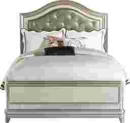 Lounge in luxury with the fashionably chic Petit Paris full bed. Finely crafted of pine solids and birch veneers in a stunning champagne finish, this elegant bed is embellished with mirrored accents and artful molding details. The statement-making headboard features a padded inset covered with beautifully tufted embossed fabric in a coordinating color. Chic turned legs are the perfect finishing touch. Underbed storage trundle included. Mattress and foundation (if required) sold separately. Bed shown is twin size.