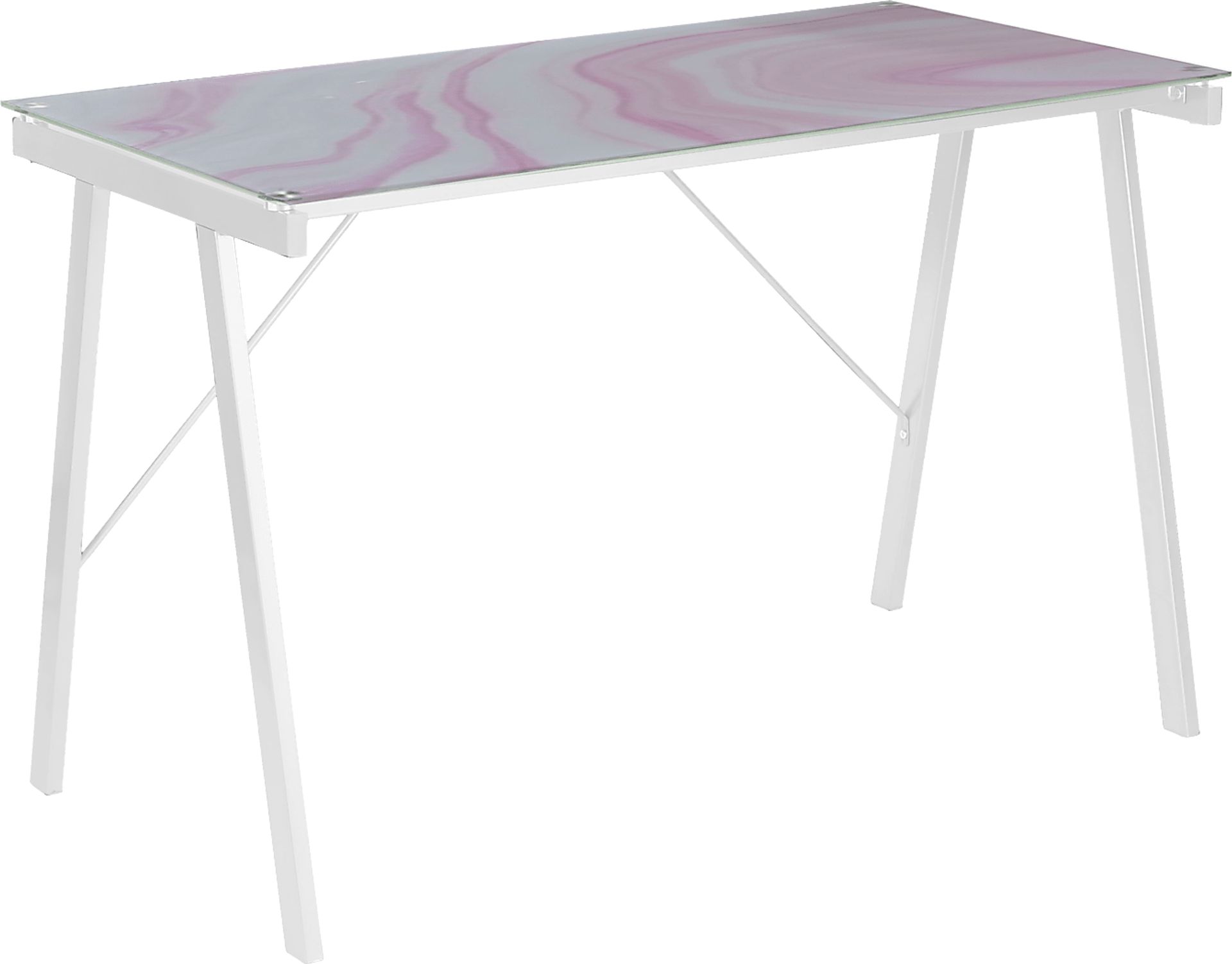 Your pink obsessed kid will go crazy for the kaleidoscope of rosy tones on the Pink Marble desk. Crafted with a white frame, this piece's surface features awesome graphic art encased by tempered glass that's easy to clean.