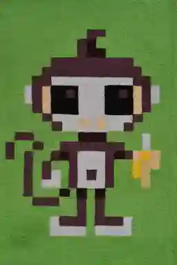 Transform your child's play space with our "Pixy Monkey" rug. Featuring a playful pixelated monkey holding a banana on a vibrant green background, this rug will inspire your child's imagination and creativity. Made with soft and durable materials, it's perfect for playtime and will add a fun touch to any room.
