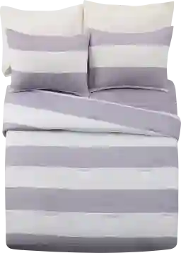 Make sure your little sport gets a good night rest with the Plocar 3 piece comforter set. This bold and versatile printed stripe adds a modern touch to your room. The printed face reverses to a solid making this comforter completely reversible. This easy care set is made of super soft brushed polyester. This comforter set is complete with two matching shams.