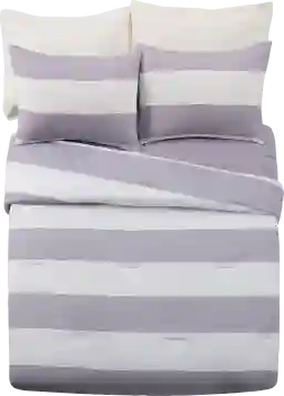 Make sure your little sport gets a good night rest with the Plovar 2 piece comforter set. This bold and versatile printed stripe adds a modern touch to your room. The printed face reverses to a solid making this comforter completely reversible. This easy care set is made of super soft brushed polyester. This comforter set is complete with one matching sham.