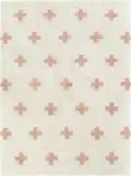Polypropylene is valued for its inherent stain resistance. For most kid-related messes, our care guide recommends spot cleaning immediately with a mild detergent and cool water. Because the fibers are non-porous, liquids tend to stay on the surface rather than soaking deep into the core, allowing you to lift stains effectively while preserving the vibrant peach color and geometric pattern.