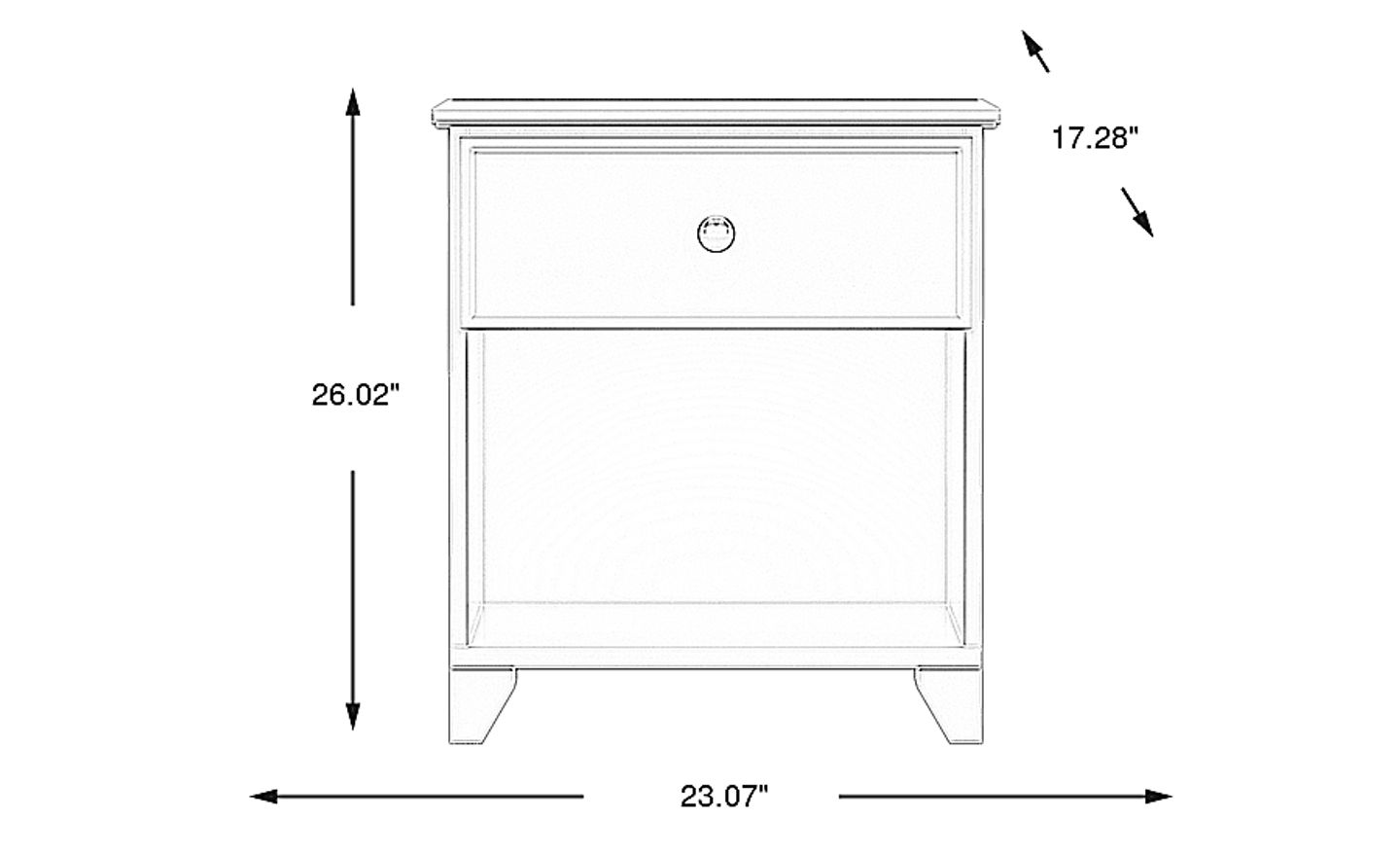 Designed with both accessibility and organization in mind, this piece features a convenient combination of hidden and open storage. The single drawer, accented with a silver-finished pull, is ideal for tucking away "special treasures" or personal items, while the lower shelf provides an easy-access spot for a water bottle, alarm clock, or favorite bedtime stories.