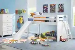 Kids Preston Place White Twin Loft Bedroom With Slide And Chest