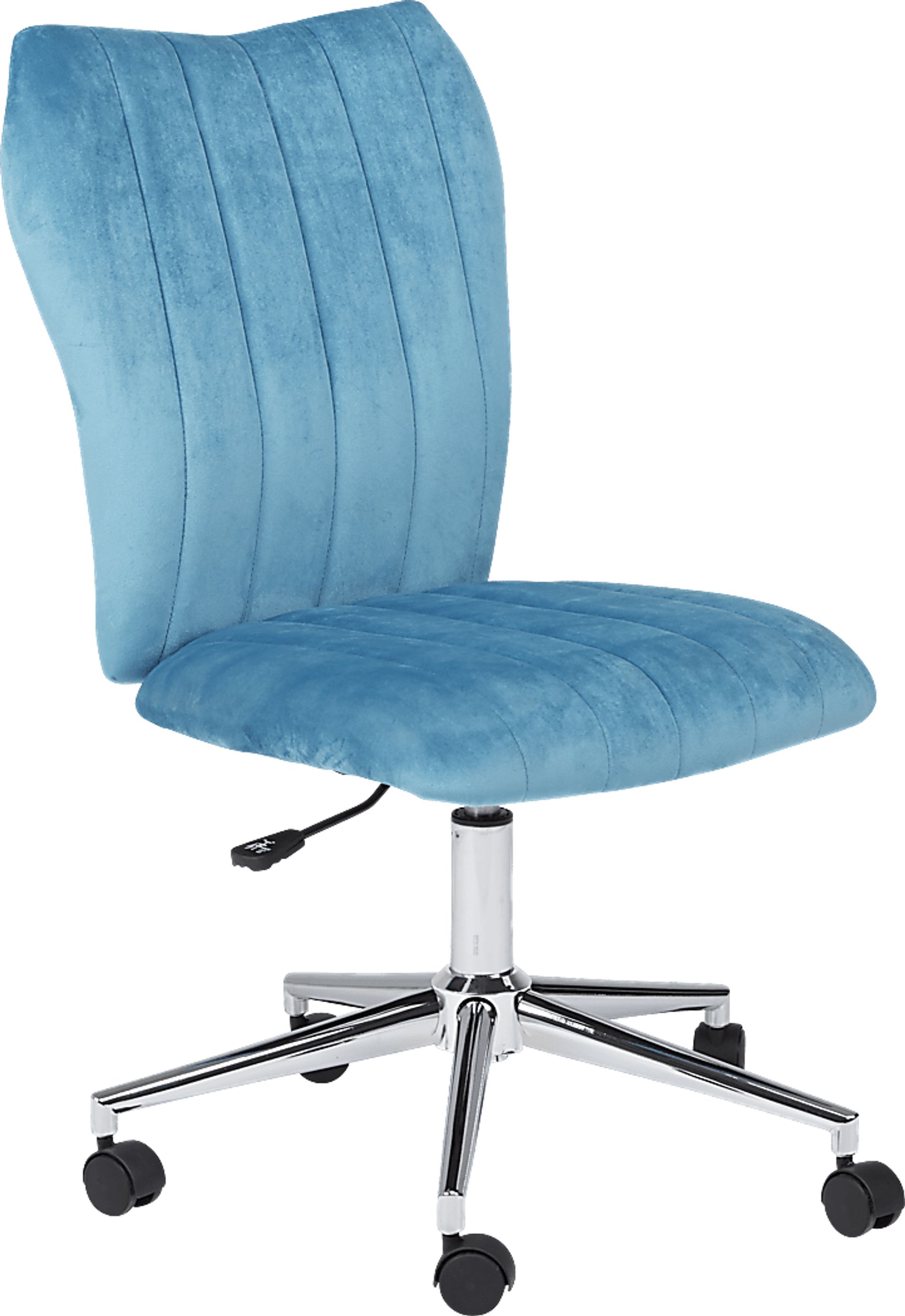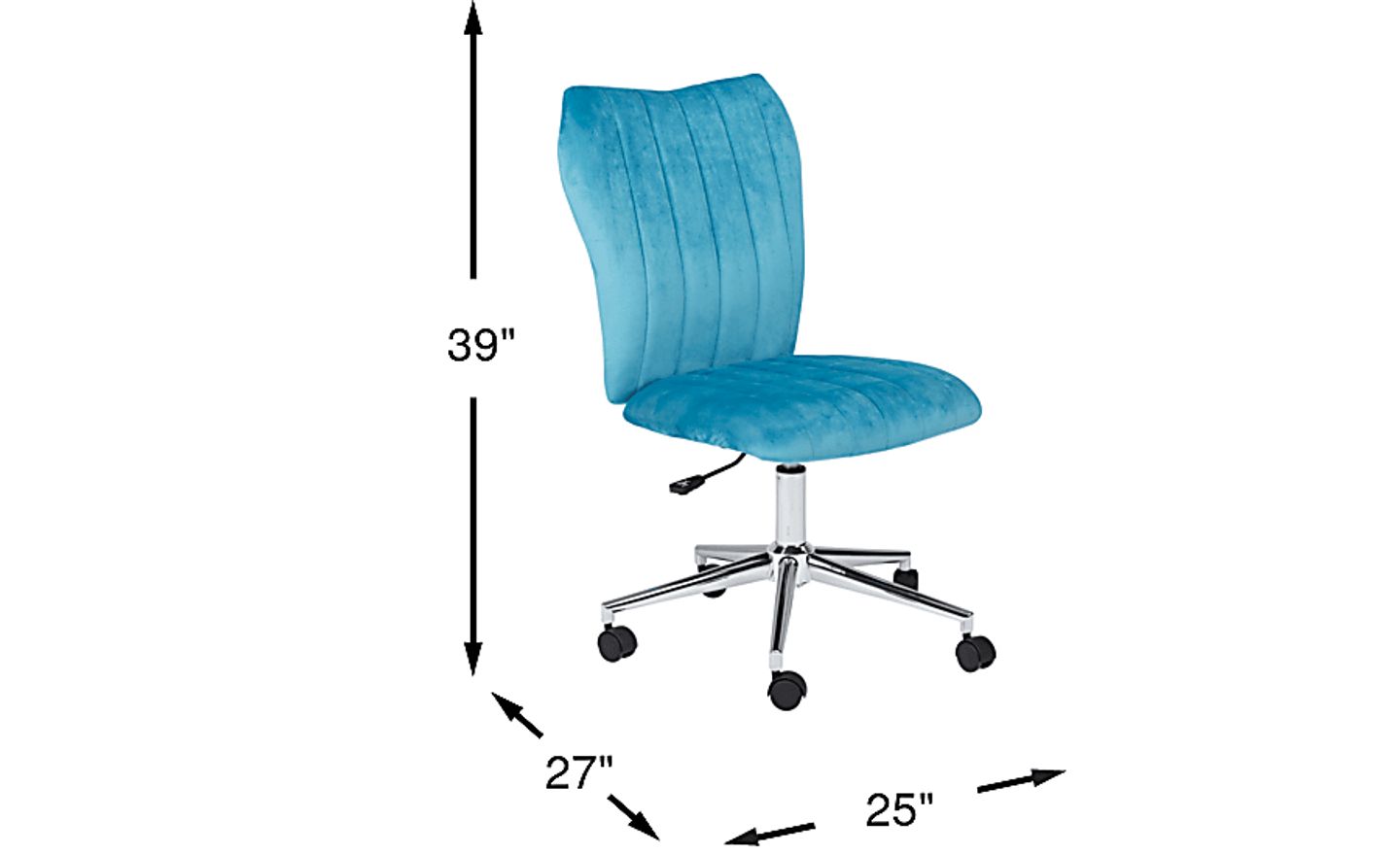 Roll up to homework or game time in the fun and stylish Raylan desk chair. The velvet fabric in a delightful blue color provides a comfortable place to sit so your child can focus on the task at hand. The channel back and five star chrome base make for a sleek look while the height adjustable seat keeps things practical.