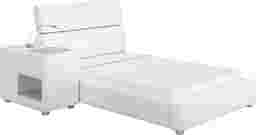 Modern and fun style come together with the Recharged bed. Upholstered with a look of leather fabric in a beautiful white color, this bed features contemporary lines. A matching, attachable nightstand jam packed with features comes with this room. Upholstery: 100% Polyester. Mattress and foundation sold separately. Bed shown is full size.
