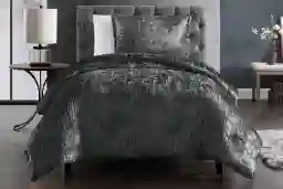 To preserve the unique crinkle texture and deep charcoal hue, we recommend machine washing in cold water on a gentle cycle. Our care guidelines suggest using a mild detergent and avoiding bleach or harsh chemicals that can break down synthetic fibers. Tumble dry on a low heat setting to maintain the comforter's 2.5-inch loft and prevent the velvet from losing its signature sheen.